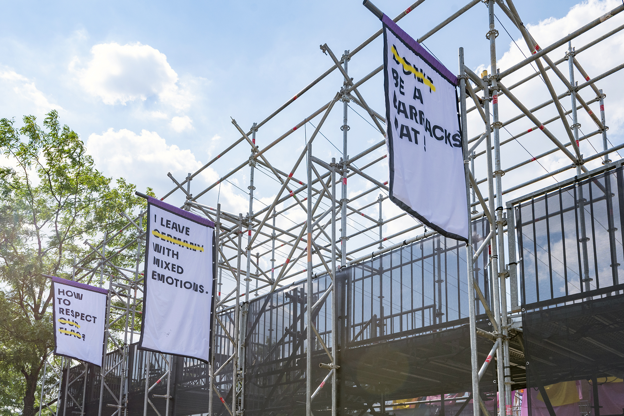 Zentraler Ort der 22. Internationalen Schillertage ist das Festivalzentrum »NTM-Island« im ehemaligen Benjamin-Franklin-Village (BFV). Das BFV war bis ins Jahr 2011 einer der größten Stützpunkte der US-Army in Deutschland. Rund 10.000 amerikanische Soldat*innen lebten und arbeiteten hier und bauten seit der Nachkriegszeit eine ganze städtische Infrastruktur auf diesem Areal auf. Das Leipziger Künstlerkollektiv Situation Room (Sven Bergelt und Kai-Hendrik Windeler) hat einen Ort entworfen, der auf das frühere Benjamin-Franklin-Village als Stadt in der Stadt verweist und heute als Konversionsfläche neu entwickelt wird.